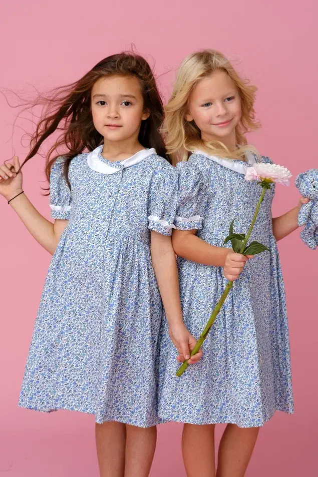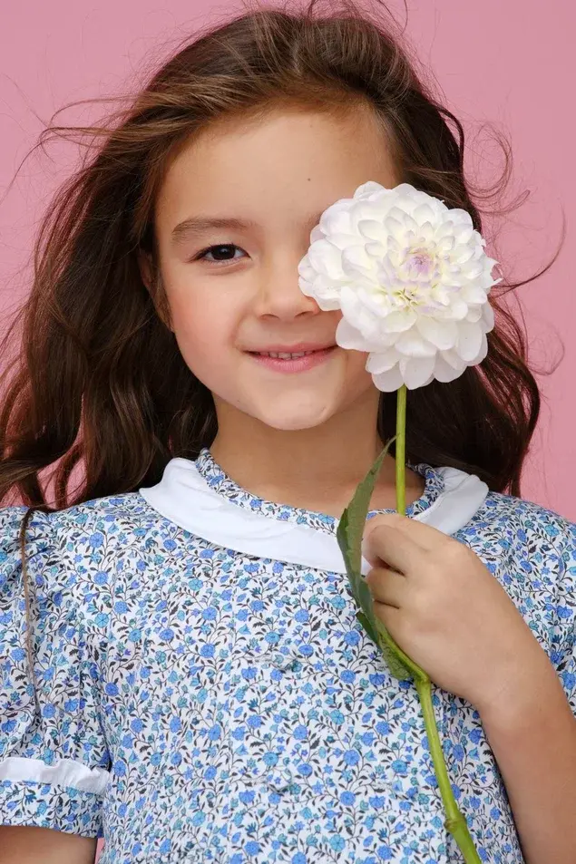 Сзади расположен функциональный пояс-регулятор, который позволяет мягко подчеркнуть талию, создавая безупречный опрятный силуэт. Белоснежный воротничок и манжеты, выступающие из под рукавов-фонариков, добавляют образу свежести и торжественности.